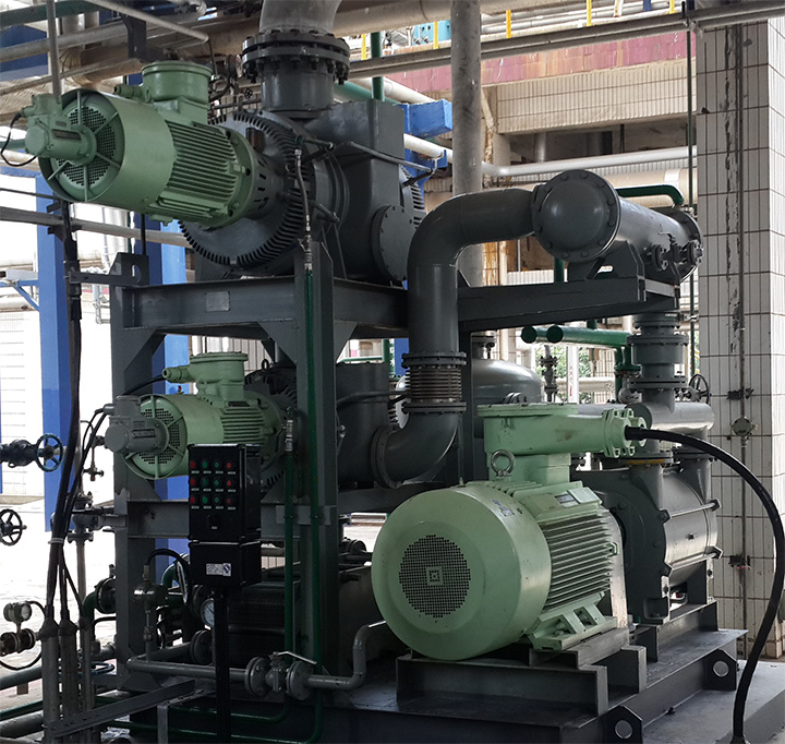 不改變原水環(huán)式抽真空系統(tǒng)的設(shè)備及功能,在抽真空主管道上并接一套羅茨—水環(huán)高效真空機組。