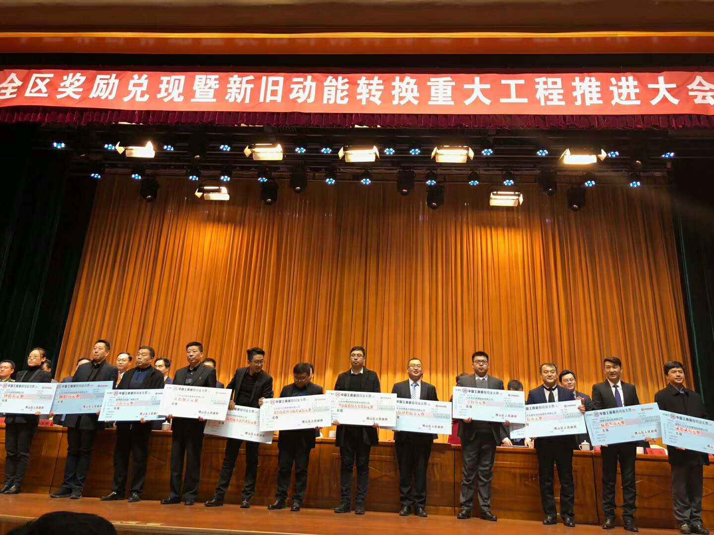 2月24日,“全區(qū)獎(jiǎng)勵(lì)兌現(xiàn)暨新舊動能轉(zhuǎn)換重點(diǎn)工程推進(jìn)大會”在原山大會堂召開。會議對全區(qū)2017年度各項(xiàng)工作中涌現(xiàn)出的先進(jìn)單位和個(gè)人進(jìn)行了表彰獎(jiǎng)勵(lì),并對今后我區(qū)企業(yè)提高產(chǎn)品附加值、科技含量、重振工業(yè)雄風(fēng)、加快實(shí)施新舊動能轉(zhuǎn)換等各項(xiàng)工作進(jìn)行具體部署。我公司因成功申報(bào)“國家高新技術(shù)企業(yè)”、“山東省企業(yè)技術(shù)中心”和“區(qū)顏山英才”被授予“2017年度全區(qū)科技創(chuàng)新品牌建設(shè)先進(jìn)企業(yè)”,并得到區(qū)委、區(qū)政府的表彰獎(jiǎng)勵(lì)。